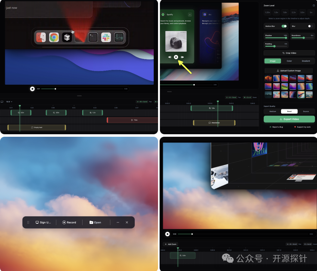 ![]() OpenScreen 的核心功能精准覆盖日常录屏、简单编辑的全场景需求。 兼顾实用性与视觉质感,既支持全屏或指定应用窗口的灵活录制,能精准捕捉所需内容、避免无效画面干扰; 可添加手动缩放效果并自定义缩放深度、时长与位置,搭配运动模糊功能让画面平移、缩放更丝滑,还能自由裁剪视频以隐藏不必要的画面部分,打造专业视觉效果; 支持壁纸、纯色、渐变或自定义图片作为视频背景,可根据不同场景需求打造个性化视觉风格; 具备便捷的标注与剪辑能力,能添加文字、箭头、图片等注释让教程、演示类视频更易懂,还可修剪视频片段、剔除冗余内容以优化视频节奏; 支持多种 Aspect Ratio 和分辨率导出,新增 GIF 导出功能,能满足不同平台发布需求,且所有导出内容均无水印、画质无损耗。 https://github.com/siddharthvaddem/openscreen 下载地址: