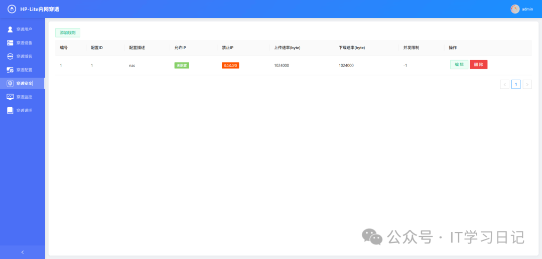 | 支持IP黑白名单:基于IP段的访问控制 支持资源阈值管控:并发连接数 + 流量读写限制 | 构建多层防护体系,抵御恶意访问与资源滥用,保护内网安全 |
