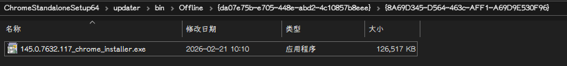 直接查看主程序文件:解压离线安装包后,就能直接看到Chrome的主程序文件,比如,而不需要依赖在线安装器的“下载”步骤。