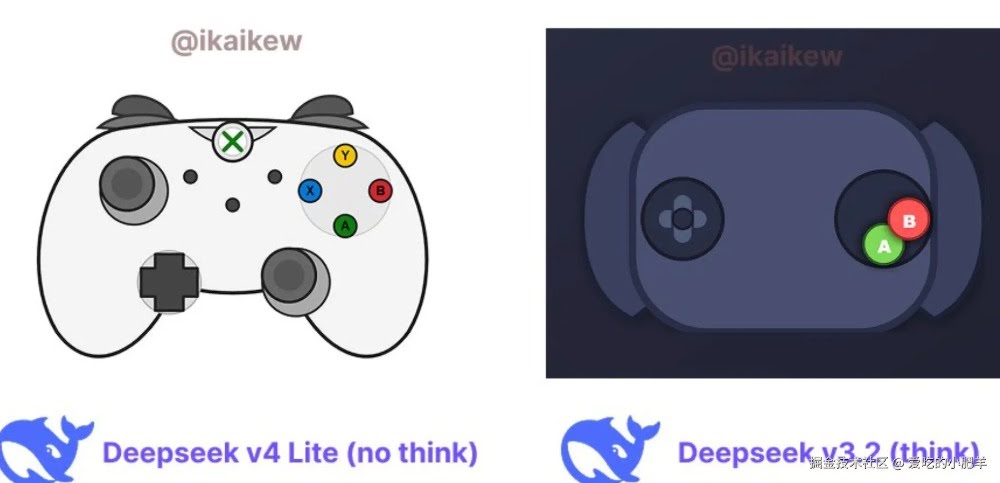第二组是"Xbox 360 手柄"。 但让大家最在意的,其实不是这组对比本身。 是这个对比的背景:V4 Lite 是非思考模式,V3.2 是思考模式。 一个没开深度思考的轻量版本,干翻了开着思考链的上一代旗舰。 有个网友的话我觉得说得很准:"轻量版不是功能弱,是成本更低。这是个成本优化的强力产品。" 还有一个细节值得单独说。 路透社报道,DeepSeek 已经把 V4 的提前访问权,给了华为等国内芯片供应商。 目的是让他们有时间提前优化处理器软件,确保模型能在国产硬件上跑起来。 英伟达和 AMD,还没拿到。 这个事情怎么解读,见仁见智。 但有一点是挺明确的:DeepSeek 在发布之前,把国内的底盘先打稳了。 关于完整版 V4,目前流传的信息比较杂,可信度也参差不齐。 有开发者猜测参数量小版本在 2850 亿左右,大版本可能到 1.4T 甚至 1.5T 万亿级别。 编程能力据称是这次最核心的突破方向,有泄露的基准测试截图显示在 SWE-bench Verified 上的得分超过了 Claude 和 GPT 系列