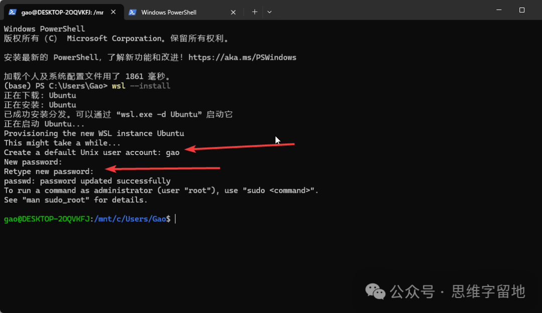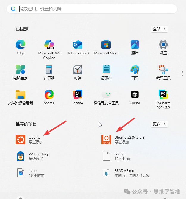 wsl --install指令其实已经默认帮我们安装了一个Ubuntu系统。
