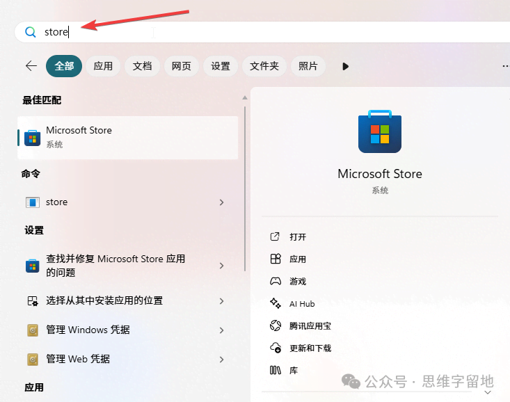 打开你的 win 系统的 store 商城。