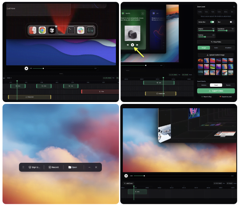 OpenScreen 是一个开源的屏幕录制和视频编辑工具,旨在成为 Screen Studio 的免费替代品。虽然它不是 1:1 的复刻,但对于大多数用户来说,核心功能已经足够强大。