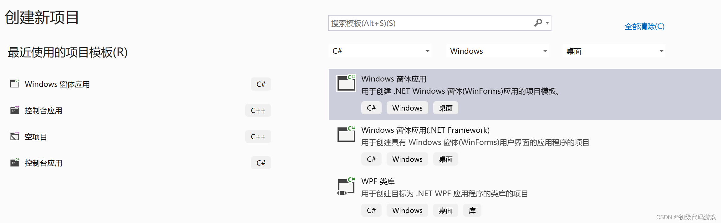 选择“windows窗体应用”。.net的命名体系是微软改名部的杰作,乱得比粥更乱,Framework已经停止更新了,做新的程序就别用了。WPF不太会,MFC过来的人比较习惯winform。下一代技术不明朗,不着急。