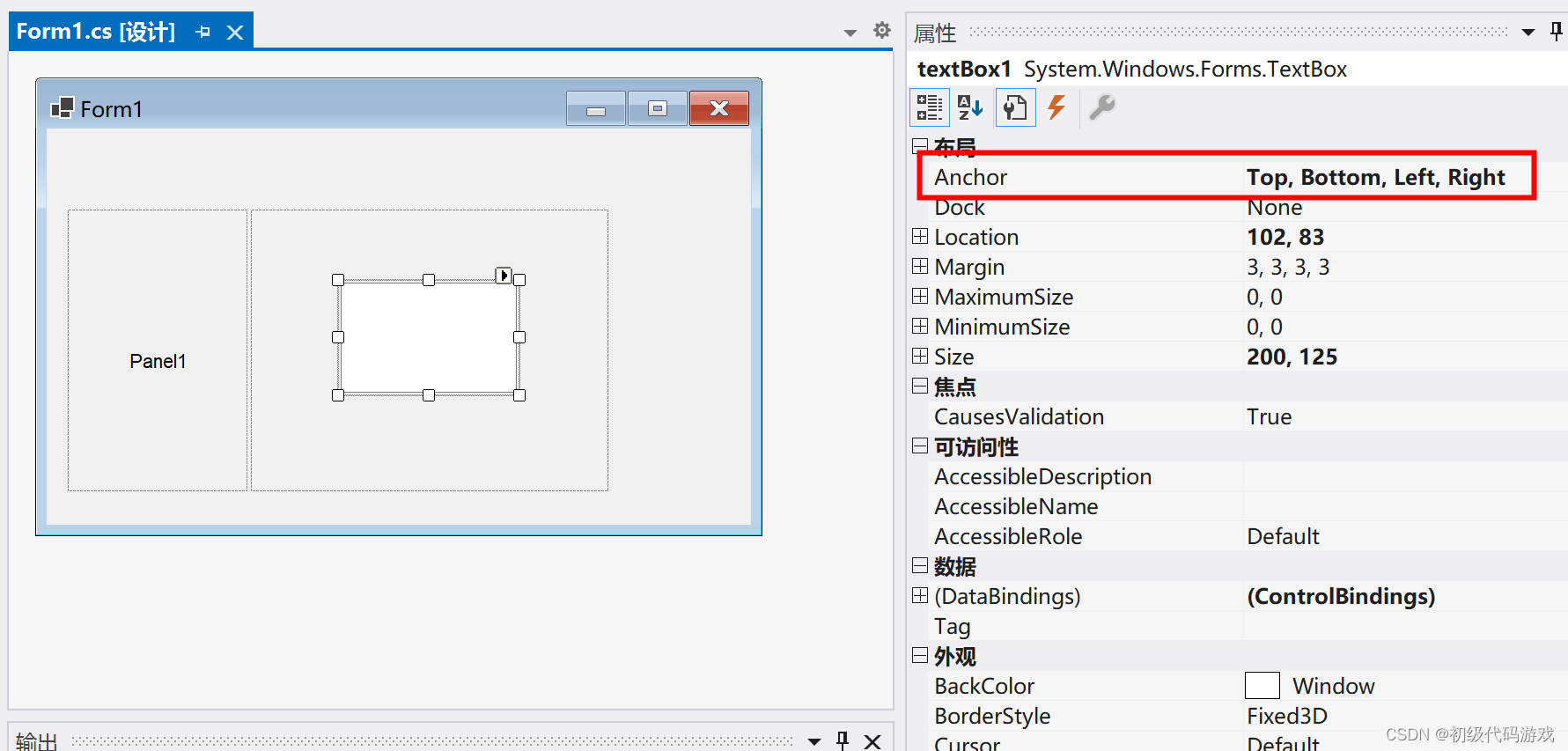 Anchor改一下,改成三面锁定,如上图,“Top,Left,Right”。再将AutoSize设置为“True”,大小会根据内容自动变化。与缩放相关的选项可能会互相干扰,上面的操作是在默认属性基础上改两个,如果对效果有疑惑,删掉重新来。