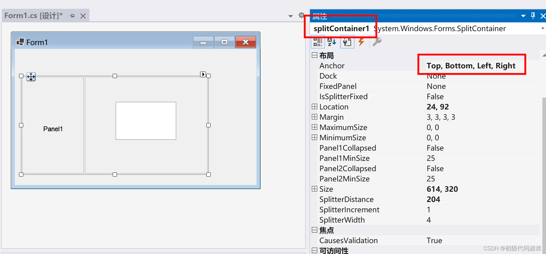 使用SplitContainer调整界面比例