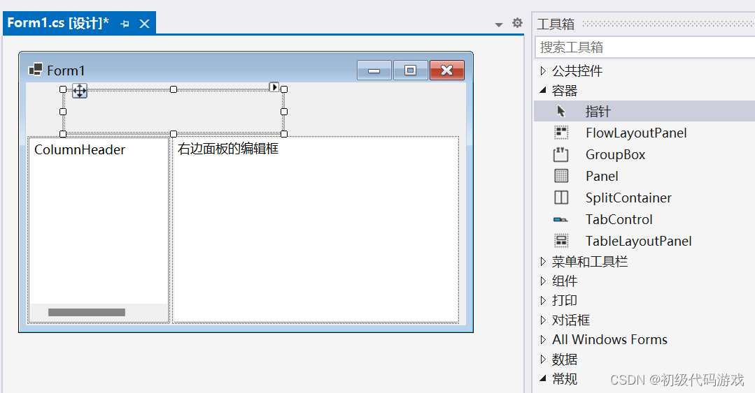 首先把SplitContainer缩小: