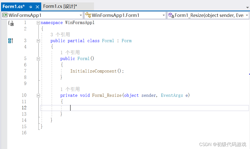 给窗口增加Resize事件的处理程序,在属性的事件里的Resize后面的编辑区域双击即可自动增加处理程序: