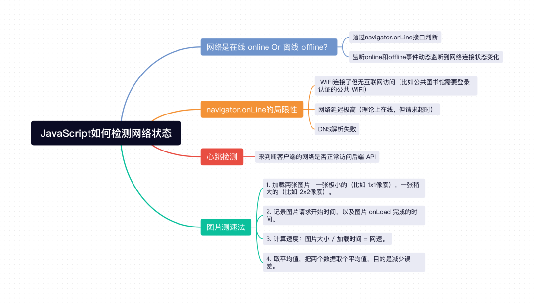 2. 由于 navigator.onLine 存在一定的局限性,比如无法识别到 WiFi 连接了但无互联网访问、网络延迟极高、DNS 解析失败等情况,我们还需要通过心跳检测方案来判断客户端是否能正常访问后端 API。