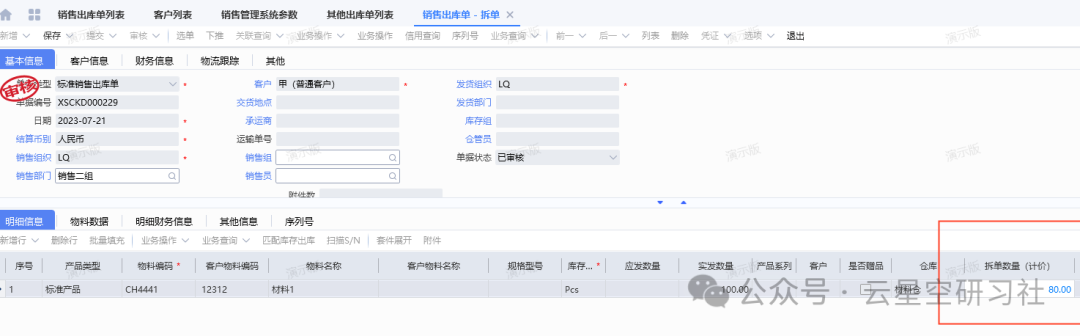 场景③:审核中的销售出库单,怎么拆单?