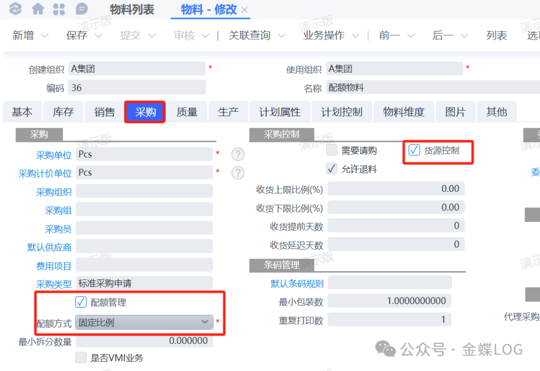 [点晴模切ERP]金蝶云星空中如何将物料采购数量按固定比例分配给多家供应商?