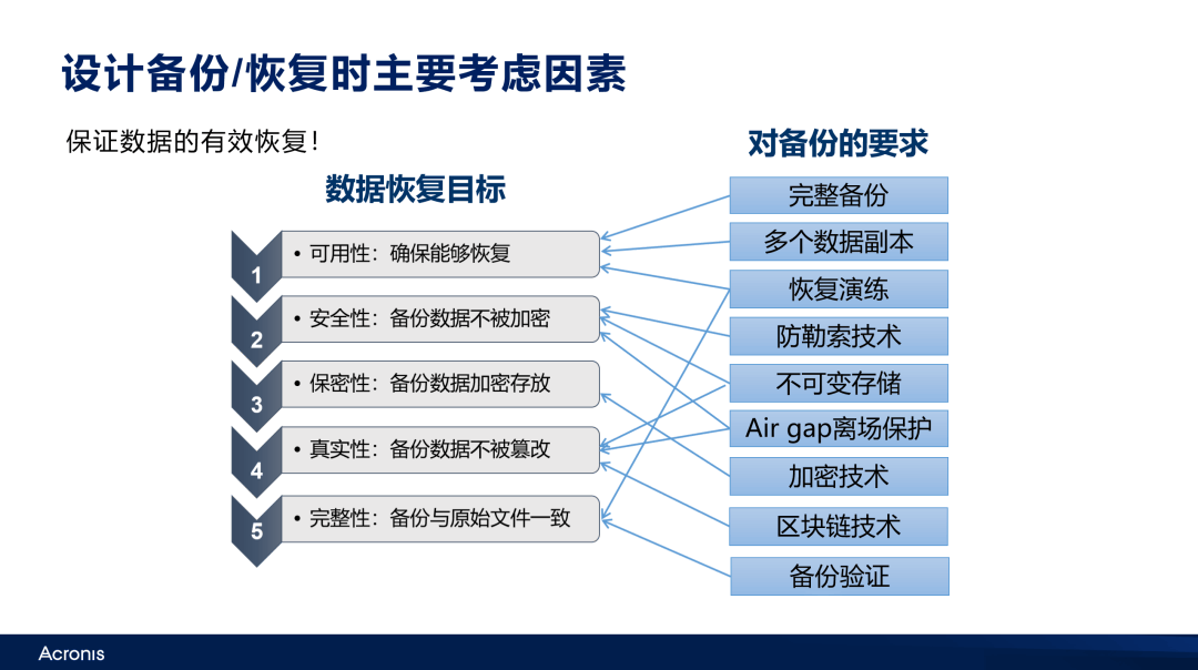 备份只是第一步,恢复才是企业的真正挑战。要确保数据可以恢复,就要确保备份数据的安全,包括以下几个方面: