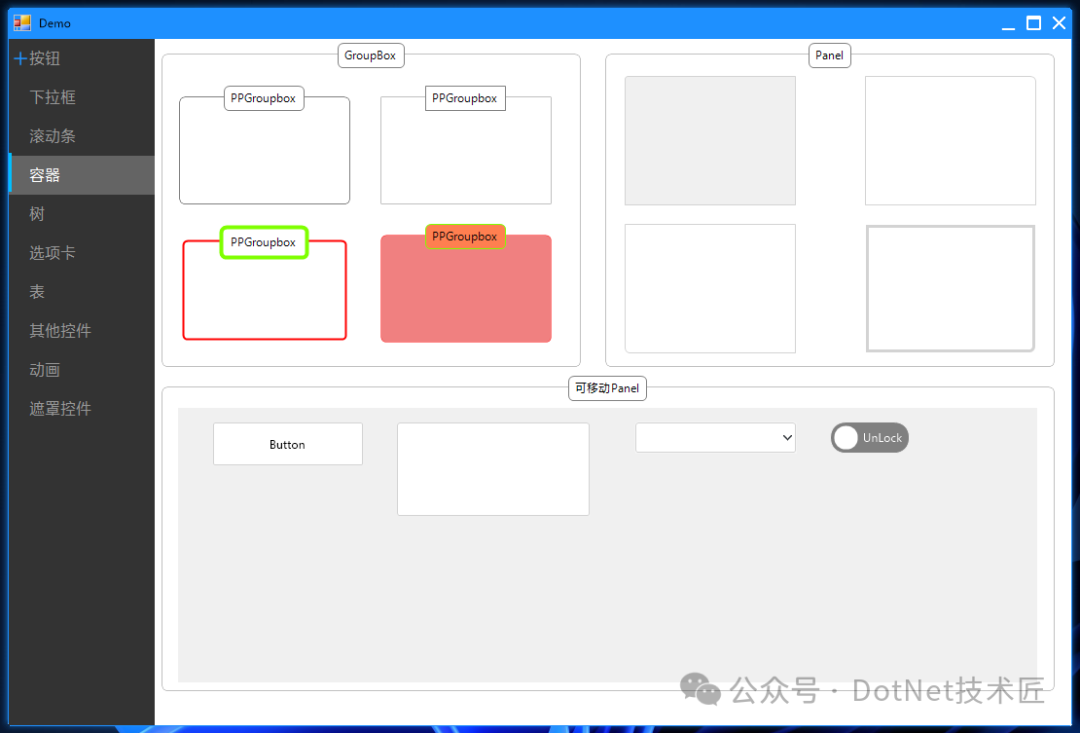项目涵盖多种常用控件的自绘实现,包括但不限于按钮(Button)、面板(Panel)、文本框(TextBox)等。其中,最为引人注目的当属PPFlodPanel控件,该控件在原有Panel的基础上增加了动画效果,使得面板的展开与折叠过程更加流畅自然,极大地提升用户界面的交互体验。