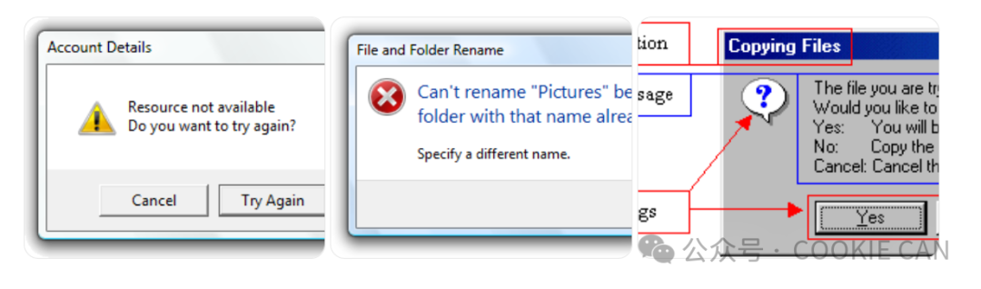 MessageBoxA是 Windows 提供的一个系统函数,用来专门调用一些错误和正确的提示窗口,直接说可能不是很明白,但是看下图你就明白了:学习这个系统函数是因为我们观察到,弹出的错误弹框正是调用了这个函数,那么我们不就有思路了吗,在这个函数这里下断点,那么往回跟一定就是判断关键验证点的地方啊!!!首先把软件拖入od(Olly Dbg)中,一进来是这个界面,注意点在什么地方:还记得刚学的MessageBoxA吗,按住ctrl+G,直接搜索这个,定位到这个点后可以在这加上个注释(按一下;可添加messageboxa注释)按F8一步步走下去直到把程序运行出来,然后观察是哪个点触发了弹窗函数,按F2下断点在这里:然后随便输入一个数字,点击按钮后程序就来到了我们下的MessageBoxA这个断点处,此时注意观察栈的地址(右下角),程序进入错误弹窗的分支(准备弹出错误提示)001AF2B4 0040138D /CALL to MessageBoxA from 破解程序.00401387