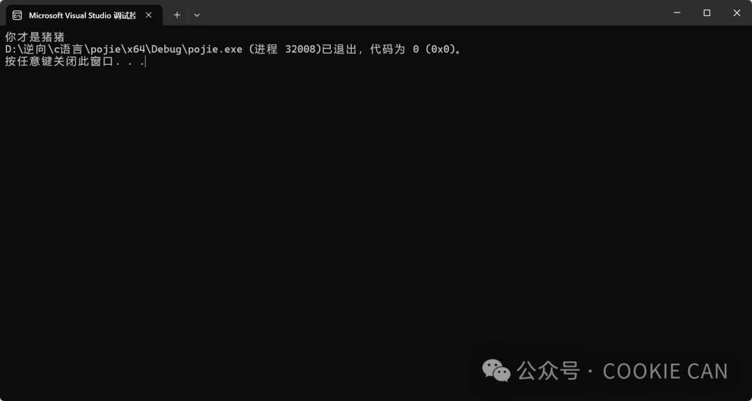 第二个参数就是退出这个错误窗口的地址,我们要知道,主程序是在运行的过程中才调用这个错误的函数的,所以我们要退出分支函数,回到主函数,才可以找到关键验证点,所以直接ctrl+G搜索这个地址回到主函数中很明显这就是关键点位置!!!,而且看到有je判断语句,je表示什么呢?既然是这样的话,那我们把断点下在这,然后把je改成jne看看会发生什么聪明的人可能看到了,既然有显示字符串 “破解成功”,那是不是可以直接搜索字符串啊,说的没错,确实是简单的做法,那我就直接搜索看看有没有:很明显,是有的,更离谱的是验证码都给出来了:123456,但是我为啥不一开始就讲这个方法,而是讲正常的思路呢,因为字符串可以被改为16进制的字节,如果别人一开始就将这些字符串换成16进制或者其他编码的符号,那么你怎么搜出来呢,举个例子,以上就是些破解的大概思路,有兴趣的朋友可以了解一下,看一下