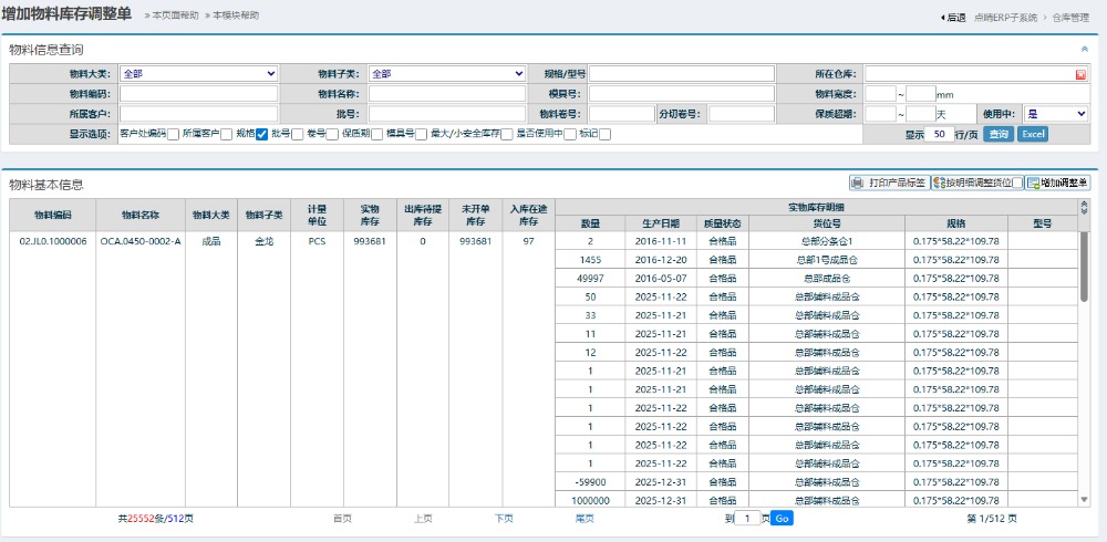 点晴模切ERP仓库管理—仓库出库管理之物料在库调整