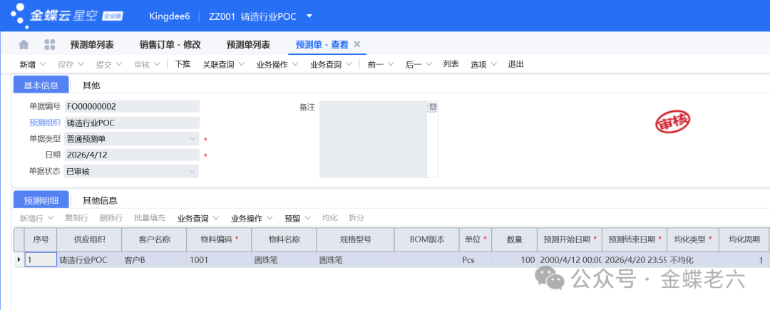 今天给大家带来一个关于金蝶云星空预测冲销的深度理解与解析!预测冲销是金蝶云星空计划管理中的一个核心概念,主要用于处理预测需求与实际销售订单需求之间的关系,以避免重复计划和生产。一、核心概念预测冲销(也叫预测消耗)是指:当企业根据市场预测(预测单)提前备货或安排生产后,一旦产生实际的销售订单,系统会自动用销售订单的数量去...