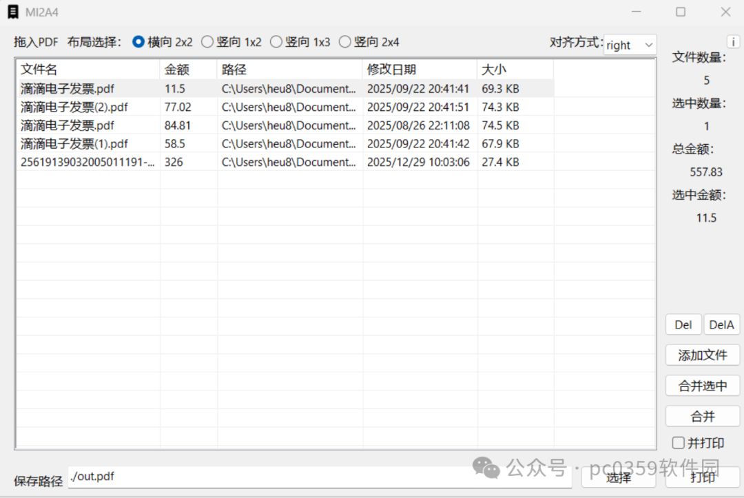 今天推荐一款PDF发票合并工具。支持添加、删除PDF文件列表;批量合并PDF发票到一个文件;支持多种发票排列布局;可以进行总金额和选中金额的统计,支持编辑金额。可以将PDF文件直接拖拽到窗口中。对于经常要处理发票的人来说,非常方便。百度网盘:链接:https://pan.baidu.com/s/1CXVbXyv4xN...