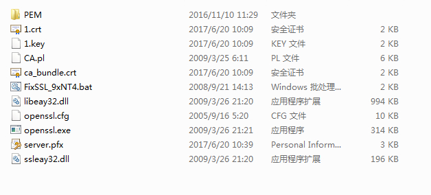 3.获得了三个文件还不能使用,需要生成pfx证书文件才可以,此时请安装OpenSSL,Windows版本下载地址:http://slproweb.com/products/Win32OpenSSL.html ,如果只是自测使用,下载简化版Light的exe格式的直接安装就行。