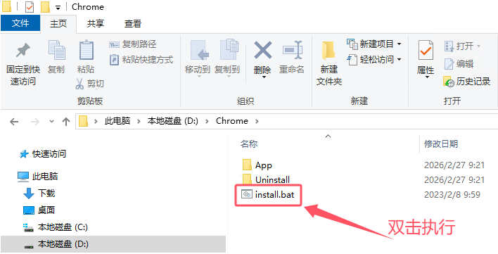 打开Chrome目录,运行install.bat: