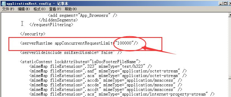 2. 调整IIS 7的appConcurrentRequestLimit设置