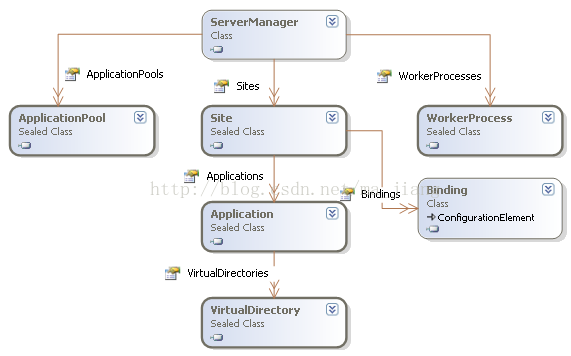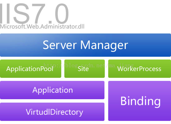 利用IIS7自带类库管理IIS现在变的更强大更方便,而完全可以不需要用DirecotryEntry这个类了(网上很多.net管理iis6.0的文章都用到了DirecotryEntry这个类 ),Microsoft.Web.Administration.dll位于IIS的目录(%WinDir%\\System32\\InetSrv)下,使用时需要引用,它基本上可以管理IIS7的各项配置。