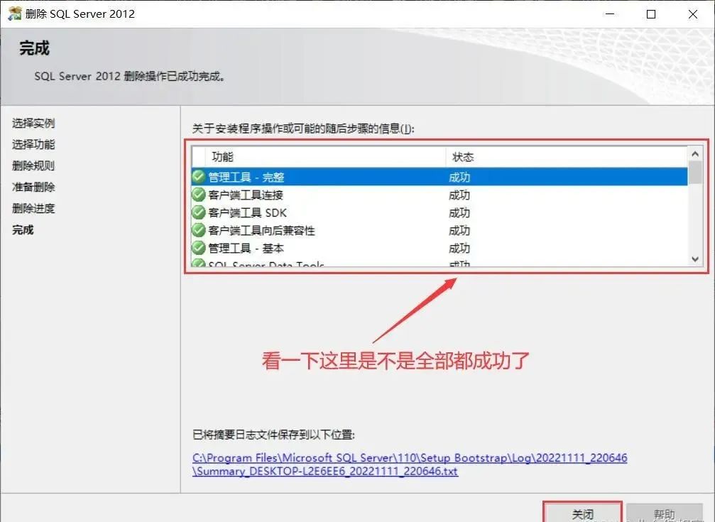 看一下状态是不是全部都【成功】了。如果全部都成功了,就直接点击【关闭】