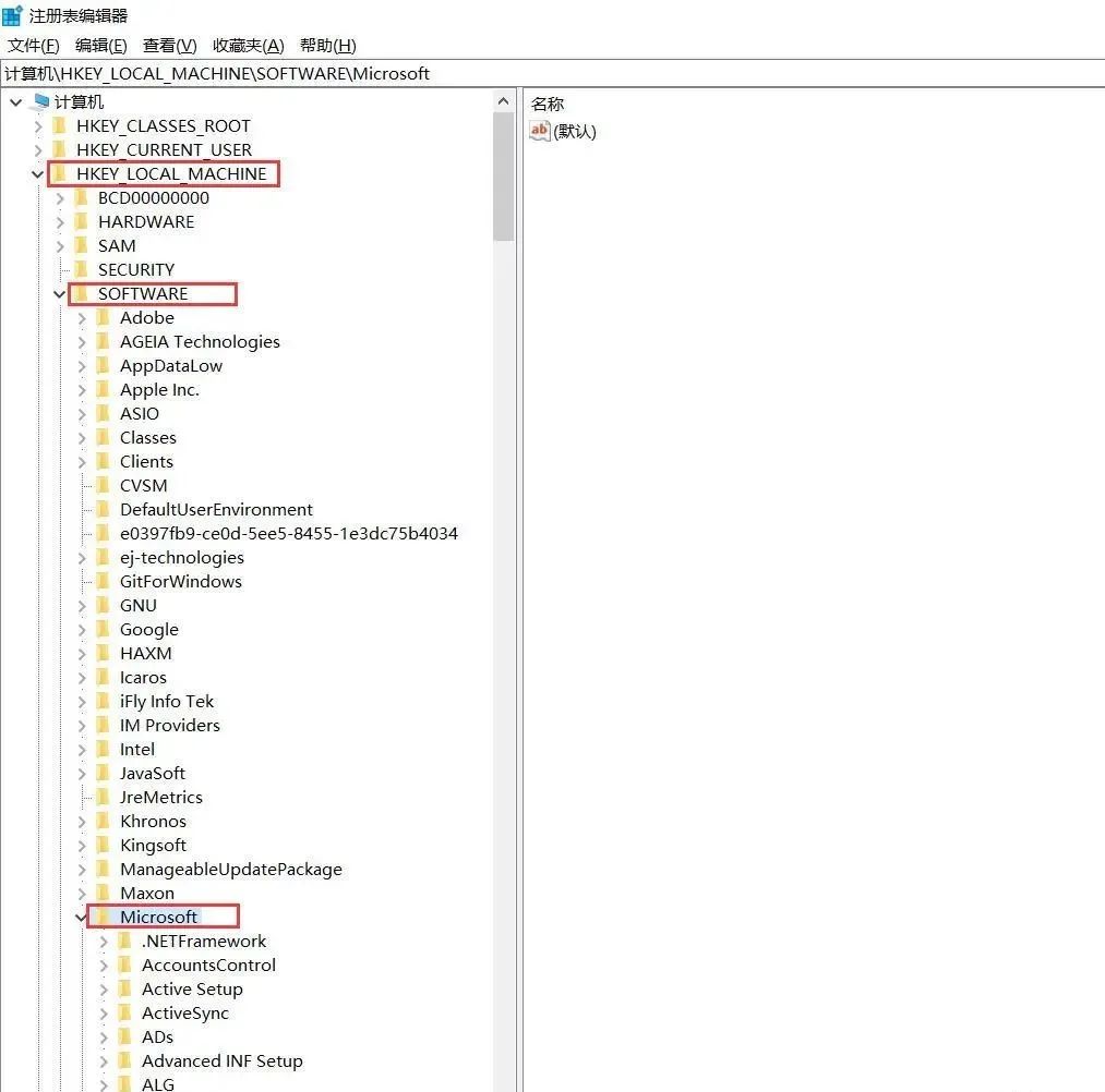 然后找到 HKEY_LOCAL_MACHINE \SOFTWARE\Microsoft 并展开