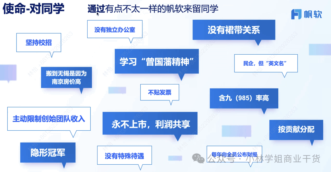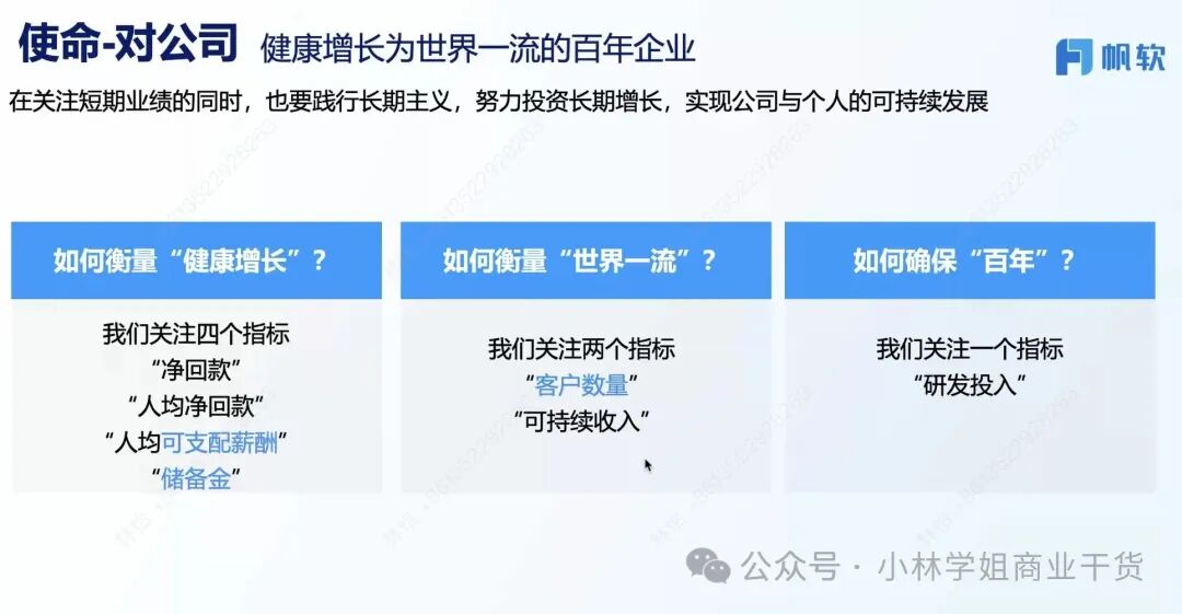 感谢帆软CEO陈炎的分享,从0-15亿+,从毕业后创业至今快20年,这是一个认知、组织、数据驱动增长的故事,是一个在无锡人才密度并不高的地方一路摸排滚打出来的实战故事。 以下是一些围绕公司管理“事、人、钱”印象深刻、引发思考的观点总结。 ![]() 事情(如何管理业务及业务流程): 看十年、谋三年、干一年:十年确认战略、财务目标、客户成功指标、专项目标,三年盘点市场空间和机会点。干一年,围绕客户、流程、组织和人才制定工作计划。 增长:有效增长——有利润的增长——消除浪费,长期增长从目标分析、财务分析开始,消除浪费这个事情要通过一线员工+文化驱动+工具来实现。 ![]() 取舍和客户旅程路径的最优解思考,主动定义“有价值的事情”,利他才能利己:1)选择客户:从非标走向标准化,就意味着不给“非标”资源。2)让客户用起来并分享:搬运最佳实践:让客户用起来,以标杆客户为核心考核,3)实施:帮助客户培养数字人才,利他到利己,65%来自产品,35%来自实施服务。 ![]() 学习标杆、落地适配帆软不同阶段的“业务流程”和规则: 当年最早没有资源、也不知道管理,就在天涯学习华为的管理方法。通过学习不断在建立自己的业务流程,比如LTC的落地适配,赢单的流程对应能力训战。这点让我挺感慨,因为一大票创业公司会觉得大公司那套没用,但关键不是套着用,是理解并针对性适配。 比如所有人都说以客户为中心,落到组织里的规则是:接投诉电话,10秒内不接就转到创始人。 ![]() 数据驱动,先BI自己:市场空间、业务流程、个人绩效等等。 20%的人因为相信所以看见,80%的人还是要看到各种数据来相信,比如公司的客户空间。 也通过数据推进管理。比如流程关键控制点分析,管理线索、机会、应收。比如从经营、业务、科目、专项上纲举目张。同样通过数据分析来看市场leads和销售转化到底“谁有理”。 ![]() 人(建立和落实组织文化): 创始团队的决策机制——共识营:无法什么事情都聊(吵不完),只探讨最重要的几个事,让战略、客户、组织、文化、分配达成共识。 同学文化:团队成员主要来自校招,因此称呼团队为同学。校招的筛选标准是招优秀的人,也会通过考试去看他们的底层逻辑———学习能力。而不是只看“学历”,或者让学历高的人觉得大家要为他服务。 公开财务报表:大家连父老乡亲可能都觉得公司赚大钱了,实际上通过报表才知道费用和成本是多么高,更能够“上下同欲”。 永远思考怎么让流程最短:比如不贴发票,报销慢影响应届生体感。业务团队服务客户,本部团队服务业务团队,合伙团队服务本部团队落地。甚是通过财务体系优化来实现了“降本”。 没有裙带关系:“不因为自己哥哥过得一般,就给他介绍生意” ![]() 钱(思考如何分配、激励,才能让事情和组织转得更好): 以贡献者为本,“不是对所有人好”:基于利润、客户满意度生成薪酬包,按照梯队核心进行“激励分配”。事先约定有价值的东西:针对山头项目给奖金。 财务核心指标中除了关注净回款、人均净回款、储备金,也关注人均可支配薪酬和研发投入——很大提高人才质量。提高可支配薪酬。 总而言之,围绕目标管理、流程建设和运营、精益管理和分配不断下功夫。 最让我感动的是,我问最早怎么招到人,他说是“真诚和愿景”,有的人选聊了8个小时,第二天还带着他去跑客户去感受。而当年吹过的“牛逼”现在也算是实现了。第二是谈及不上市时候他说,是为了“留住同学”,如果他是马斯克,当然可以“拿的最多”,而他认为、自己不是,而是同学们在创造“更大的价值”,所以要“克制”。 “虽然我们参与的同一场竞争,但是我们彼此看到的却是不同的作战地图”。因为相信,所以看见。 阅读原文:https://mp.weixin.qq.com/s/BOQ7NnQgUcDrEAsln1rL7A 该文章在 2025/9/20 11:08:30 编辑过 |