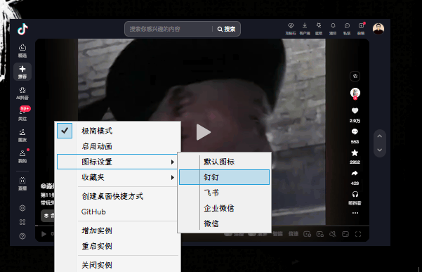 这是它最核心的亮点:关闭窗口时不会真的退出,而是最小化到系统托盘(右下角那个小箭头里),需要时点击图标就能快速唤醒,完全不占用任务栏位置。 适合场景:挂网页版微信/QQ、实时监控数据面板、后台播放网络课程音频……让这些“常驻型”网页隐形存在,不打扰你做其他事。 2. 极简模式+窗口置顶,专注度拉满默认状态下,TrayChrome没有地址栏、工具栏、标签页,整个窗口只显示网页内容,像一块“纯净的网页画布”。 如果需要临时操作,鼠标移到窗口顶部会呼出简易控制栏(刷新、后退、地址输入)