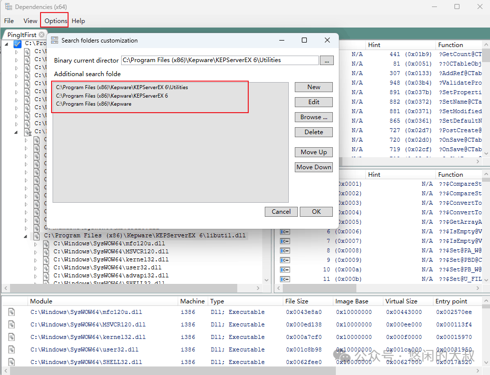 3.个别情况下,需要指定dll搜索范围,需要通过Operations菜单,打开下面对话框,添加指定dll搜索范围: