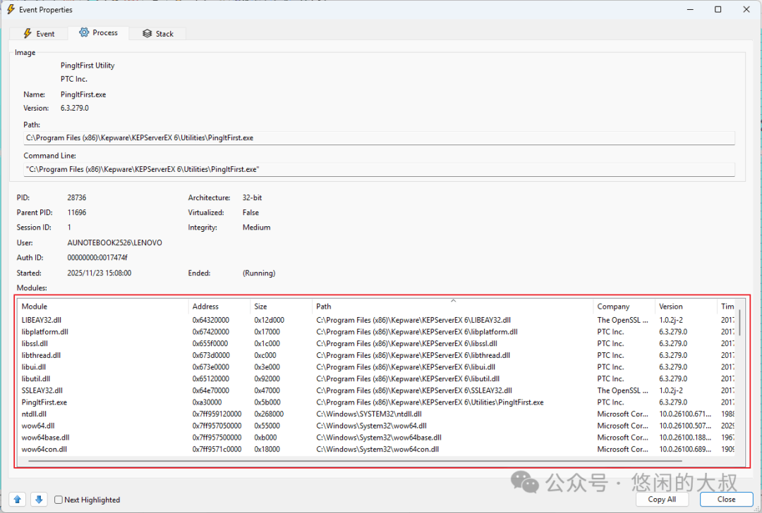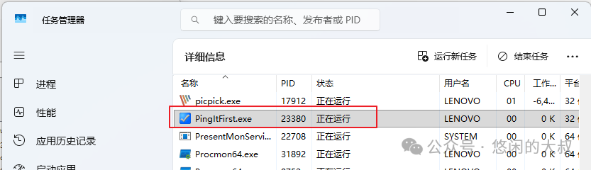 缺点: 只能分析静态依赖 输出不如图形界面直观 如果多层嵌套dll,分析起来非常困难 四、在运行时使用 Process ExplorerProcess Explorer 是微软 Sysinternals 套件的一部分,功能比任务管理器强大得多。 使用方法: 4.启动软件,并在任务管理器里找到软件的PID