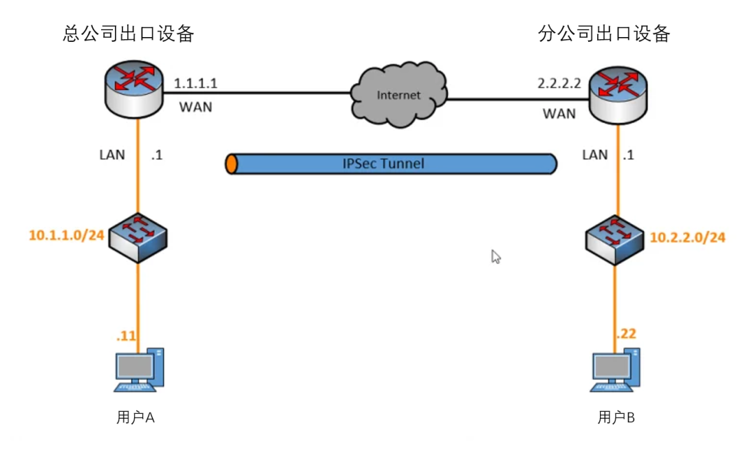 IPSec VPN企业互联的标准答案 IPSec (Internet Protocol Security) 是工作在网络层(Layer 3)的安全协议套件。它也是目前企业级网络中最常用的 VPN 技术。 它主要有两种玩法: 1. 站点到站点 (Site-to-Site)