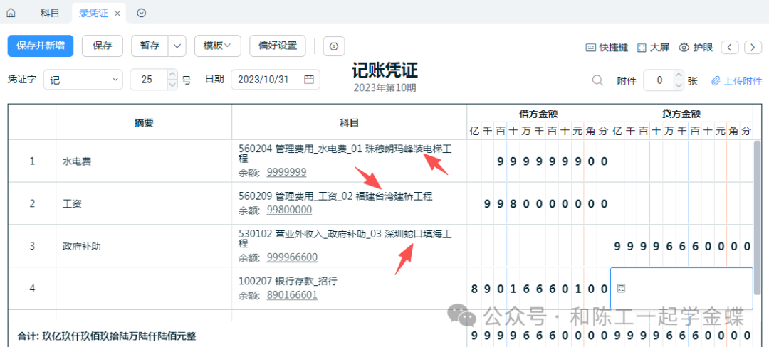 做金蝶软件这么多年接触了很多财务,知道财务月底要出资产负债表和利润表及现金流量表但是其实还有些公司还要单独核算项目利润表,这样公司知道那个项目,或者那个部门的盈利情况项目利润表,它指的是辅助核算项目,它可以是项目类的工程,也可以是部门,或者是公司的不同店铺比如按工程项目核算,出每个工程项目利润表,需要知道每个工程每月的主营业务收入,主营业务成本,销售费用,财务费用等,单独算出每个工程的利润情况那KIS系列产品都没有这种报表,只能手工根据科目余额表明细账去计算每个月都要手工在EXCEL表上计算,特别麻烦又怕数据出错没想到在仅仅只需要几百块钱一年的精斗云会计上就实现了这个功能有个客户之前用的我们的专业版软件,只是做纯财务账的,之前精斗云没出来之前,就和我提过公司让出项目利润表,我让她做自定义报表,不过每多一个项目,就要做一个报表,调公式,特别麻烦后面精斗云出来后,马上告诉了她,很快就因为这一个功能就马上升级精斗云了,就仅仅为了用到这一个功能可能这个功能对有些公司来说没有任何意义,但对另一些少部分客户来说,是特别需要的功能,可能月底出报表减少好多工作量,简直是雪中送碳比如公司是一个做工程的公司,需要统计每个项目的盈利情况,需要出项目利润表2.打开会计科目,打开损益类科目,首先先在一级科目下面增加具体的二级科目,比如收入下面有什么收入,销售费用,财务费用下面有哪些科目,及支出的具体科目那些科目需要体现在项目利润表上,那么科目就需要挂,可以一个个手工挂,如图,销售费用下面的办公用品挂项目也可以批量把收入成本费用科目全部挂上项目,左边把科目全部打钩,右上角批量操作里面,把项目打上钩3.基础资料和参数都设置好了后,现在我们开始看一下凭证怎么录入的吧录分录时,先选择会计科目,然后需要再选择相应的项目内容,如下图所示当月的凭证全部录完后,包括收入成本费用等,也结转了损益,那我们打开报表里面的项目利润表这里我们可以选择项目,比如珠穆朗玛峰装电梯项目,右边可以选择按月,还是按年查询,那么只要做过凭证的科目,那么金额就会在这个表里面体现比如公司有好几个销售部门,也可以把会计科目按辅助核算挂上部门,然后每个部门的销售收入,产生的销售费用,财务费用等,算出每个部门的盈利情况在金蝶KIS系列产品很难实现的功能,在精斗云云会计里面实现起来原来这么简单,而且使用起来特别方便和实用