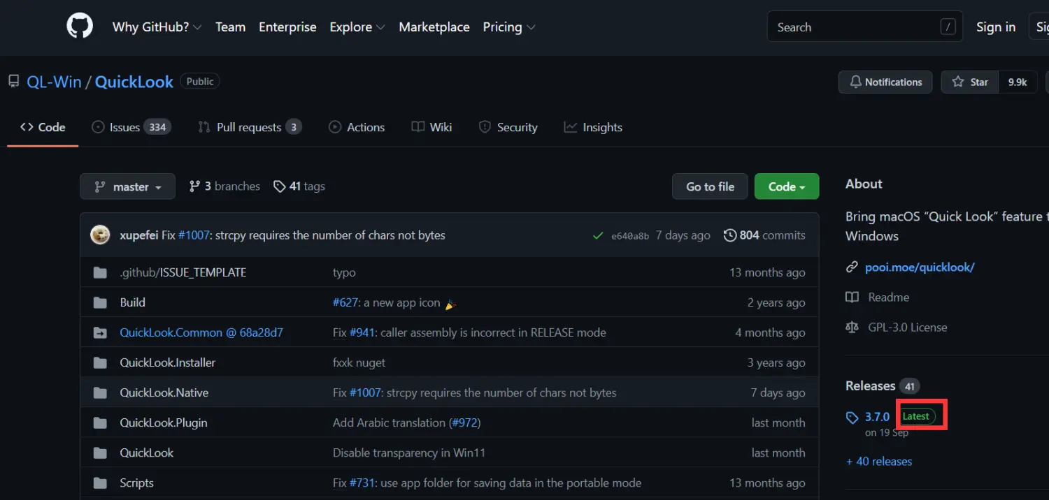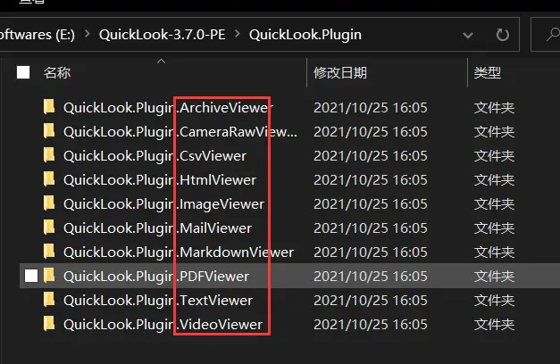 [Windows] QuickLook插件 OfficeViewer V6 1.情景展示QuickLook软件,在不打开文件的前提下,可以快速预览文件内容; 2.下载及安装下载地址:GitHub-QuickLook ![]() 红框位置,将会显示最新版本 点击:Latest,来到对应版本下载页; ![]() 提供了两种版本 一种是:安装版(.msi格式); 我用的是免安装版的; ![]() 解压,双击运行QuickLook.exe即可启动使用; ![]() 在桌面右下角,我们可以选择:启动是自动运行(也就是开机启动) ![]() 3.插件下载便携版预装插件有: ![]() 也可以点击上图当中的“获取新插件”,打开下载地址。 4.插件安装选中已经下载好的插件,按空格键,将会出现安装弹窗; ![]() 点击“安装此插件”; ![]() 出现这个提示,就安装成功啦,重启QuickLook即可(退出,然后重新打开)。 ![]() 具体报错信息在你的QuickLook安装子目录下: E:\QuickLook-3.7.0-PE\UserData\QuickLook.Exception.log ![]() 会被记录在QuickLook.Exception.log中 5.插件卸载由于我这个是便携版的,所以,手动安装的插件会被统一安装在: E:\QuickLook-3.7.0-PE\UserData\QuickLook.Plugin 将不需要的插件,目录,按delete键删除即可。 题外话 ![]() 里面的文件就是实现预览的必须文件。 插件原址:https://github.com/QL-Win/QuickLook/wiki/Available-Plugins 软件原址:https://github.com/QL-Win/QuickLook/releases 各版本 常用插件 打包分流: 百度:https://pan.baidu.com/s/1pMjU3O3wb4WesiSUTdAlnA?pwd=52pj 提取码: 52pj 夸克:https://pan.quark.cn/s/8a577aeae031?pwd=96w5 提取码:96w5 迅雷:https://pan.xunlei.com/s/VOhNRf6xlJK4AKD0AUhgrYa5A1?pwd=qfs6# 插件安装方法:选中已经下载好的插件,按空格键,将会出现安装弹窗,点击“安装此插件” 该文章在 2025/12/31 16:36:03 编辑过 |