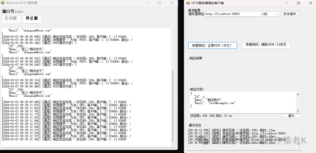 - 3、服务器准备:先启动之前的 WinForm HTTP 服务器(管理员身份,端口默认 8080)。