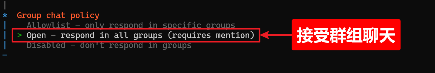 域名选择中国的: 接受群组聊天: 选择完成: 选择yes: 选择open: 选择继续,完成配置: 重启服务,使配置生效: 七)回到飞书后台设置事件回调