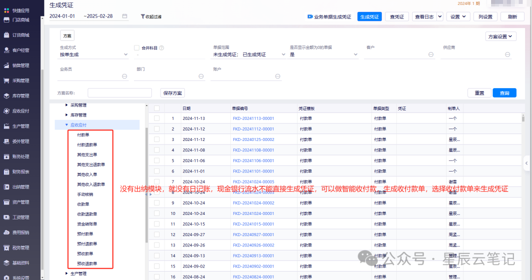 [点晴模切ERP]金蝶云星辰出纳流水导入后可以直接生成凭证吗?
