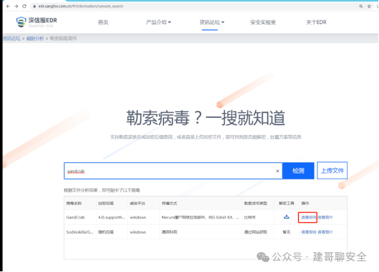 如深信服的 http://edr.sangfor.com.cn/#/information/ransom_search