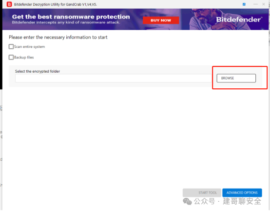 下载软件 这里有很多不同版本的解密工具,为避免下载问题,实验环境中已经内置好解密工具。学员也可以自行尝试下载不同工具,尝试解密。 打开文件夹C:\USERS\download2\ 双击运行软件BDGandCrabDecryptTool