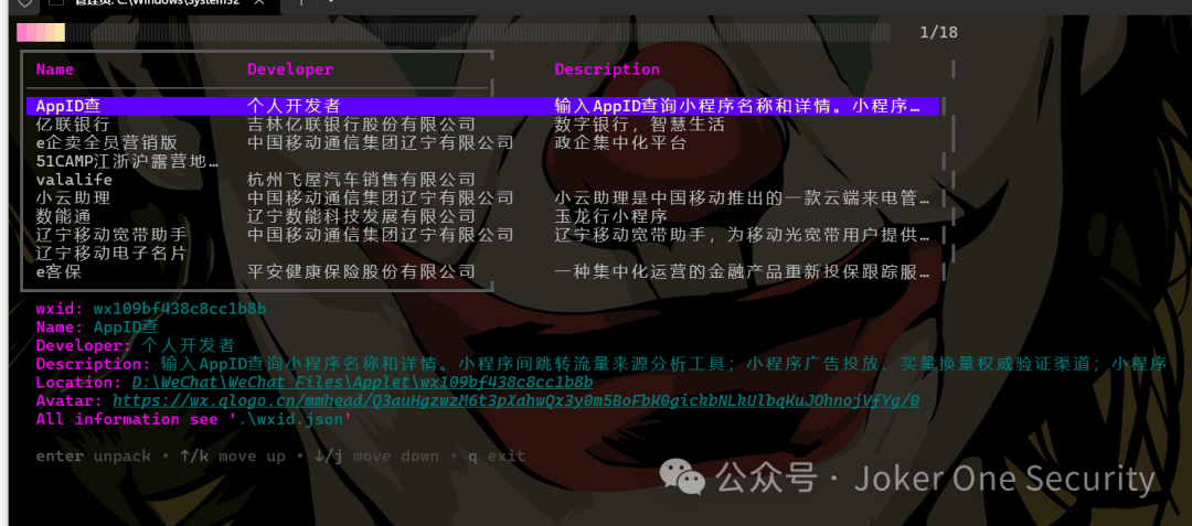 滚轮或上下键选择要反编译的小程序,选择后按enter健即可