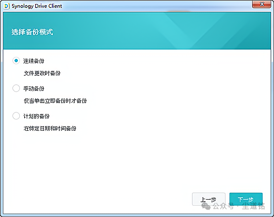 根据需要选择三种备份模式。强烈建议您选择三种模式中的连续备份(实时备份,有新数据产生或者数据变动),因为这有助于避免数据丢失。
