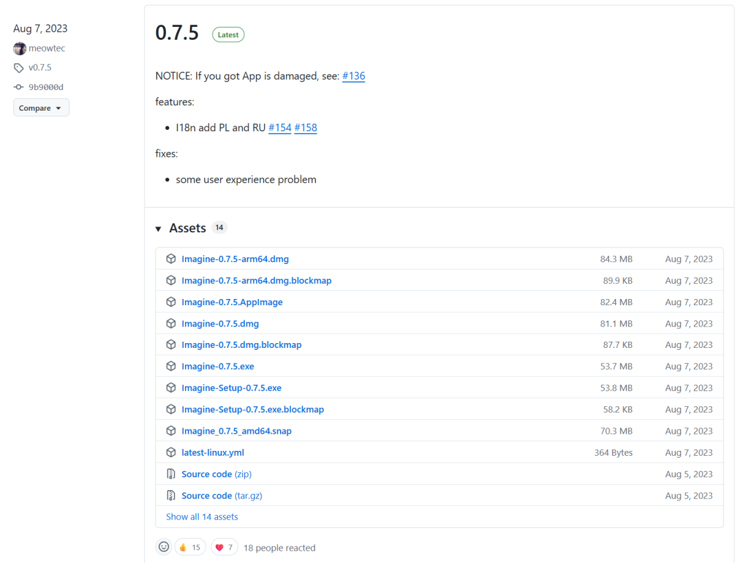 安装方式方面,我们可以在Imagine的GitHub release页面下载安装包: