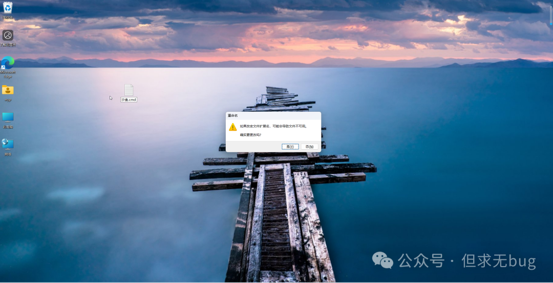 保存后将文件名改为沙盒.cmd,此时会弹出警告信息: