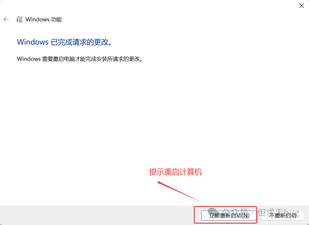 安装完毕后会提示重启计算机: