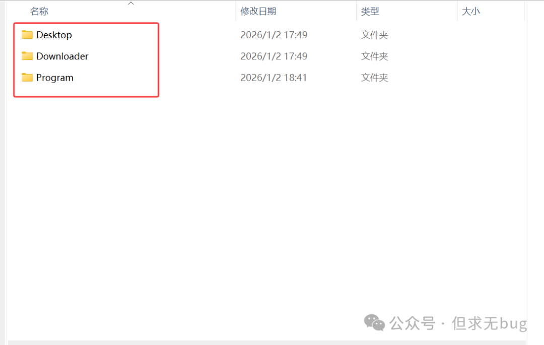 首先新建一个沙盒专用文件夹,同时在其内创建两个目录:Downloads 、Program 和 Desktop ,其中 Download 用于存在安装包或其他可执行文件,Program 为程序的安装目录,而 Desktop 则用于存储沙盒内的桌面快捷方式。