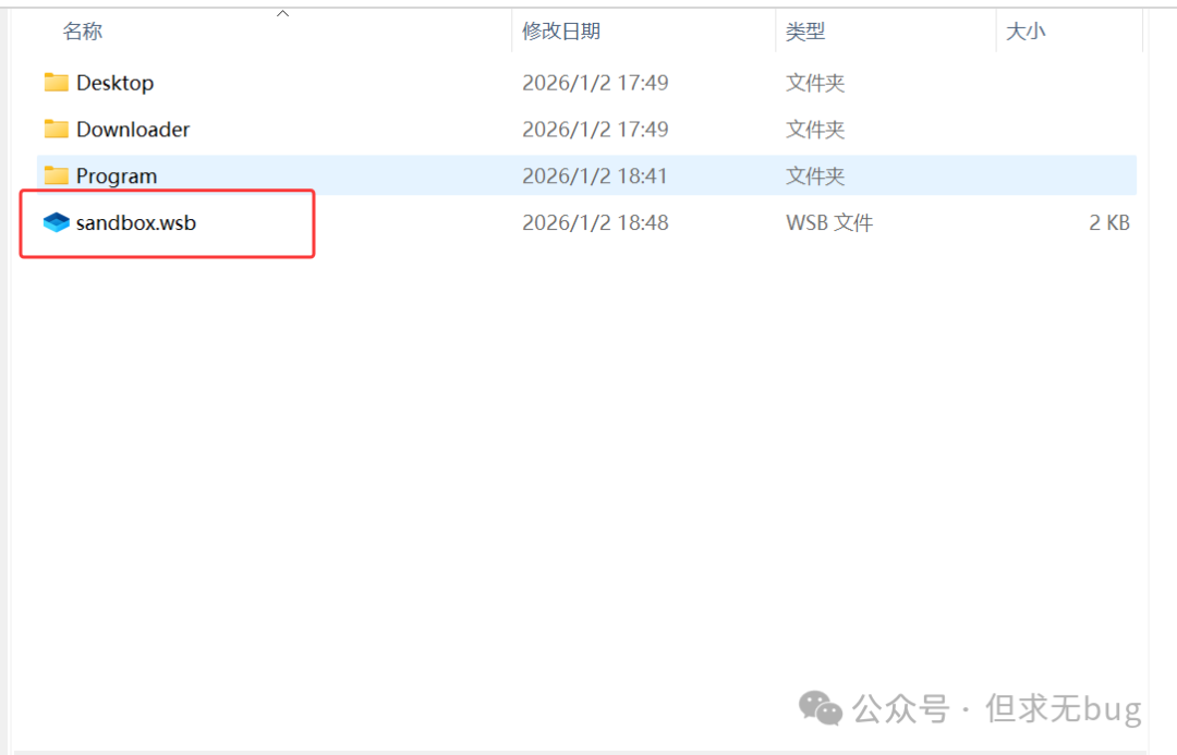 接着按 “Ctrl + S” 进行保存后修改文件名为“sandbox.wsb”:
