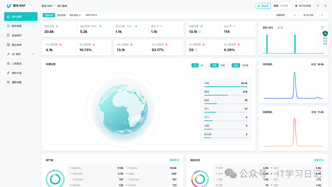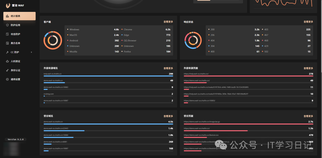 简介SafeL是一款开源免费的自托管Web应用防火墙(WAF),旨在为Web应用服务提供一层安全防护屏障,可有效防御各类非法恶意攻击。它提供了访问频率限制、人机验证、动态防护等核心功能,通过过滤和监控Web应用与互联网之间的HTTP流量来保护Web服务,可有效抵御各类SQL注入、XSS、代码注入、命令注入、CRLF注入、ldap注入、xpath注入、RCE、XXE、SSRF、路径遍历、后门、暴力破解、CC、爬虫等攻击,保护用户资产不受侵害。 SafeL的防护效果不仅仅只是纸上谈兵,截止目前为止,在全球装机量已经超过30万台,日均处理300亿次请求,检出率76.17%,误报率仅0.22%。 它支持容器化部署(Docker 、Docker-compose)和自有服务器部署2种方式,用户可基于需求灵活选择,作为自托管WAF,用户可对流量、日志、配置完全掌控,不依赖任何第三方SaaS,适合对数据隐私、安全性有较高要求的个人和团队,可应用于个人网站、企业网站、企业各类服务,大型Web应用等多种场景。