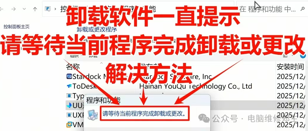 [点晴永久免费OA]卸载Windows系统中软件时,总提示“请等待当前程序完成卸载”,怎么办?