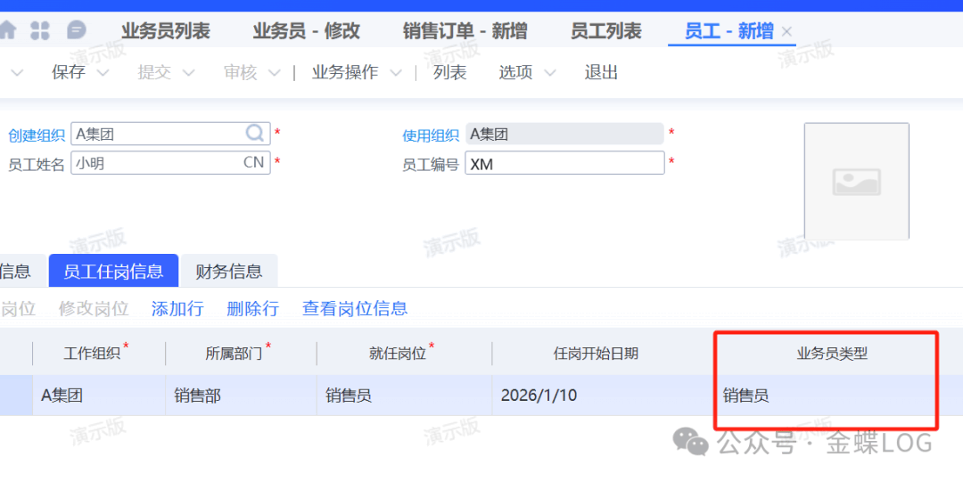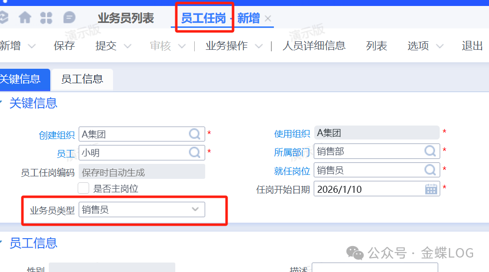 学完本篇文章,您将学会: ①如何手动的新增业务人员。 ②如何自动的新增业务人员。 在往下阅读前,大家务必先学习一下如何新增员工、岗位信息和员工任岗这篇文章,因为【员工任岗】信息是新增【业务员】的前提资料。 一、手动新增业务员